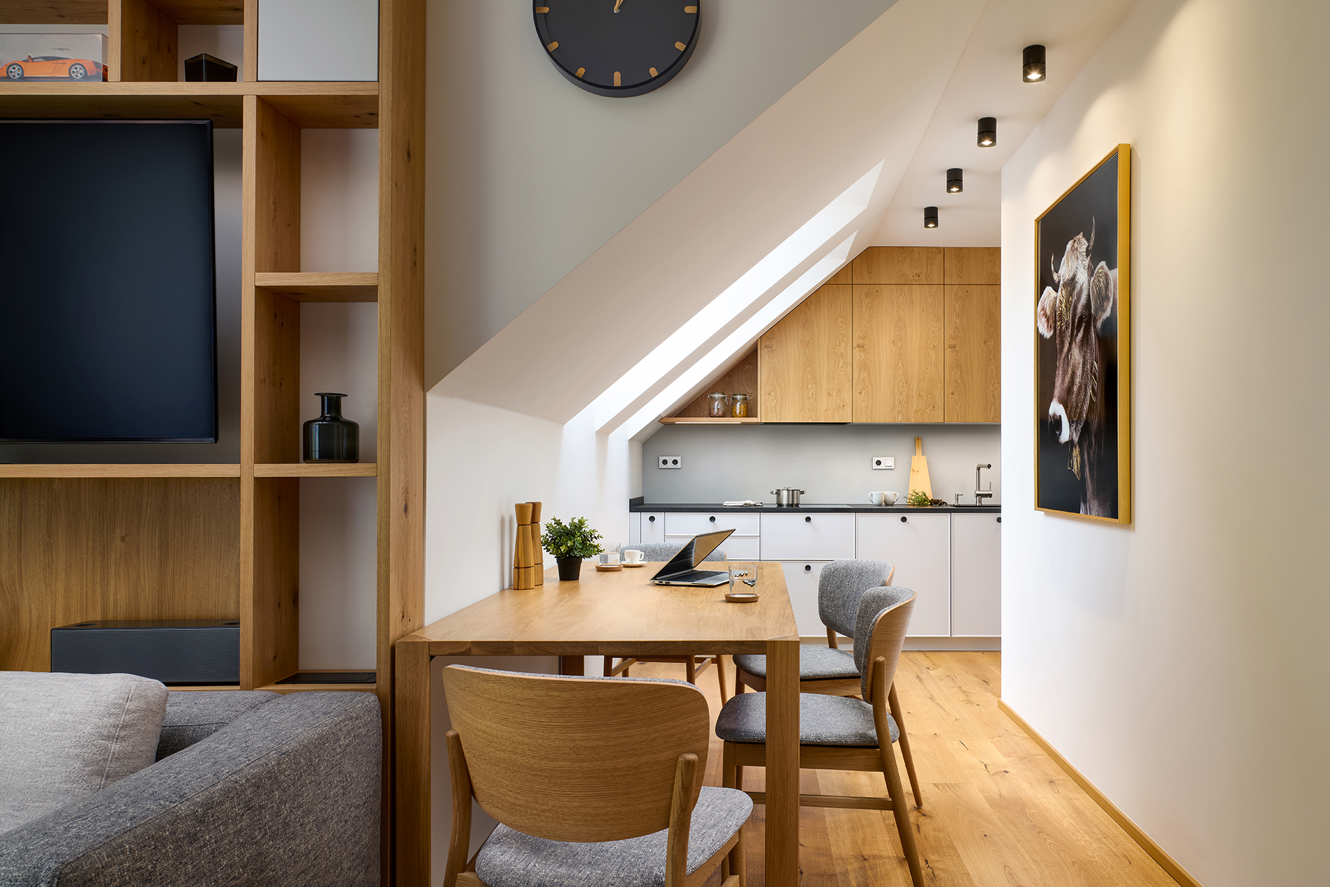 Zeitlose Eleganz in Kombination aus Holz und weißem Glanz