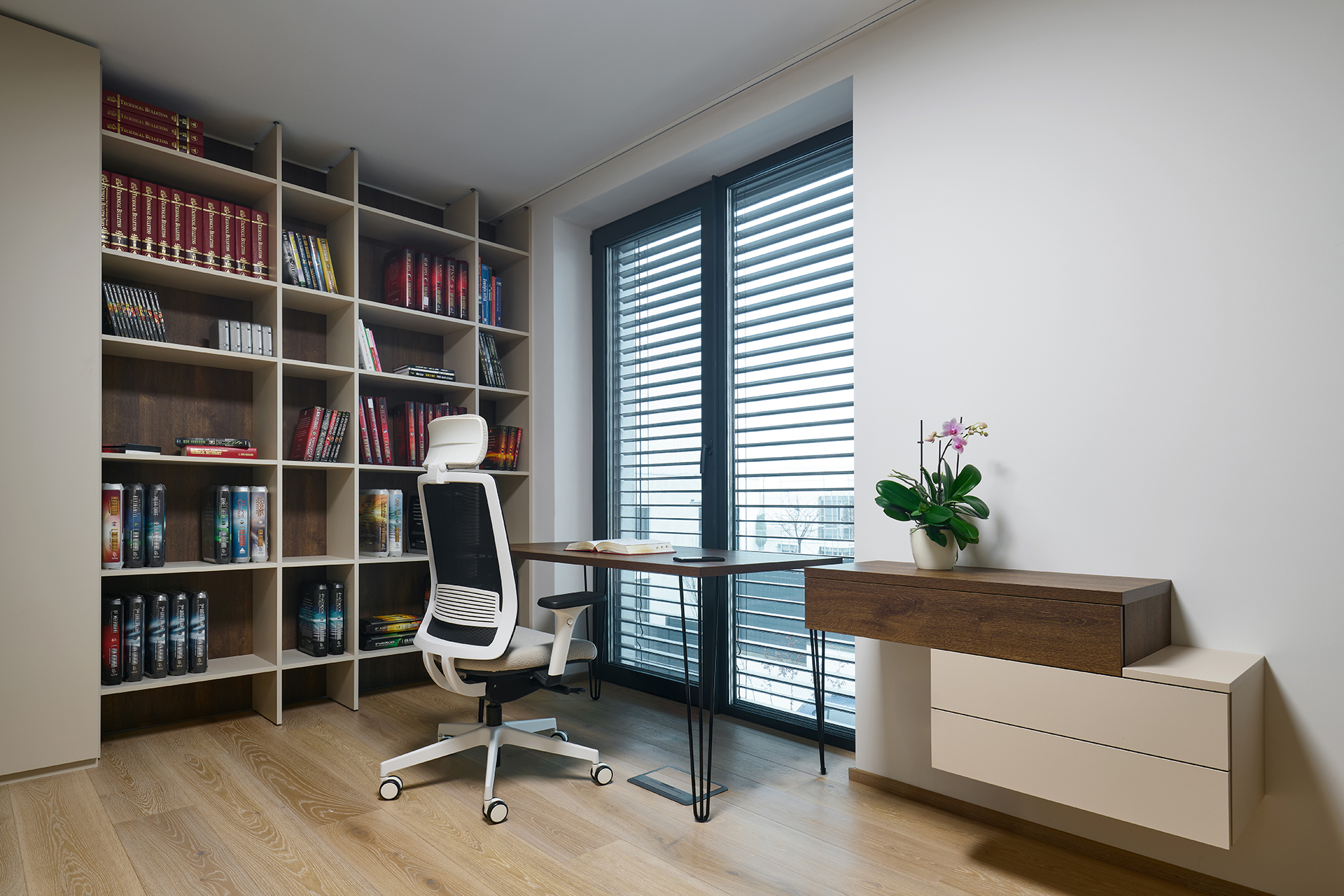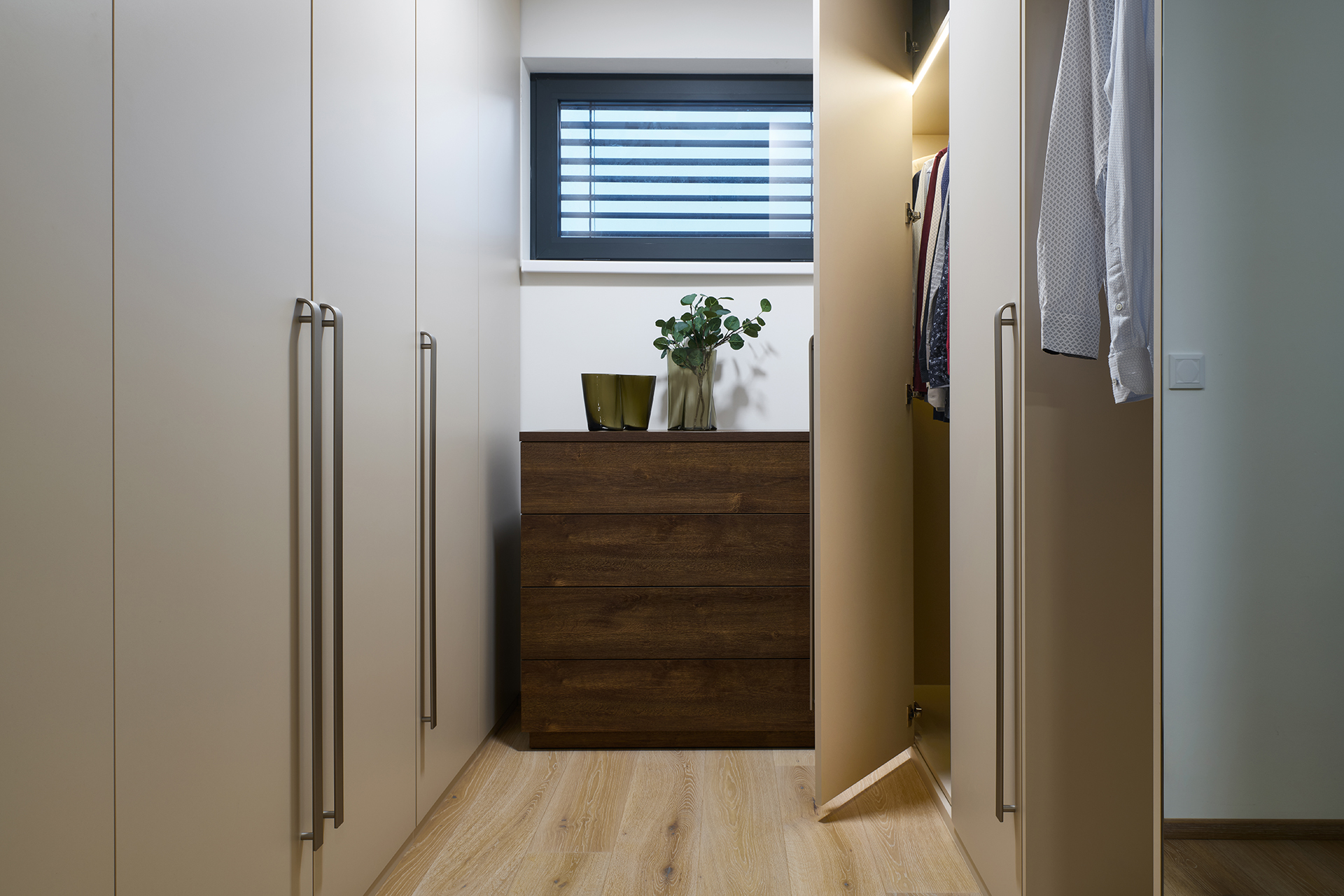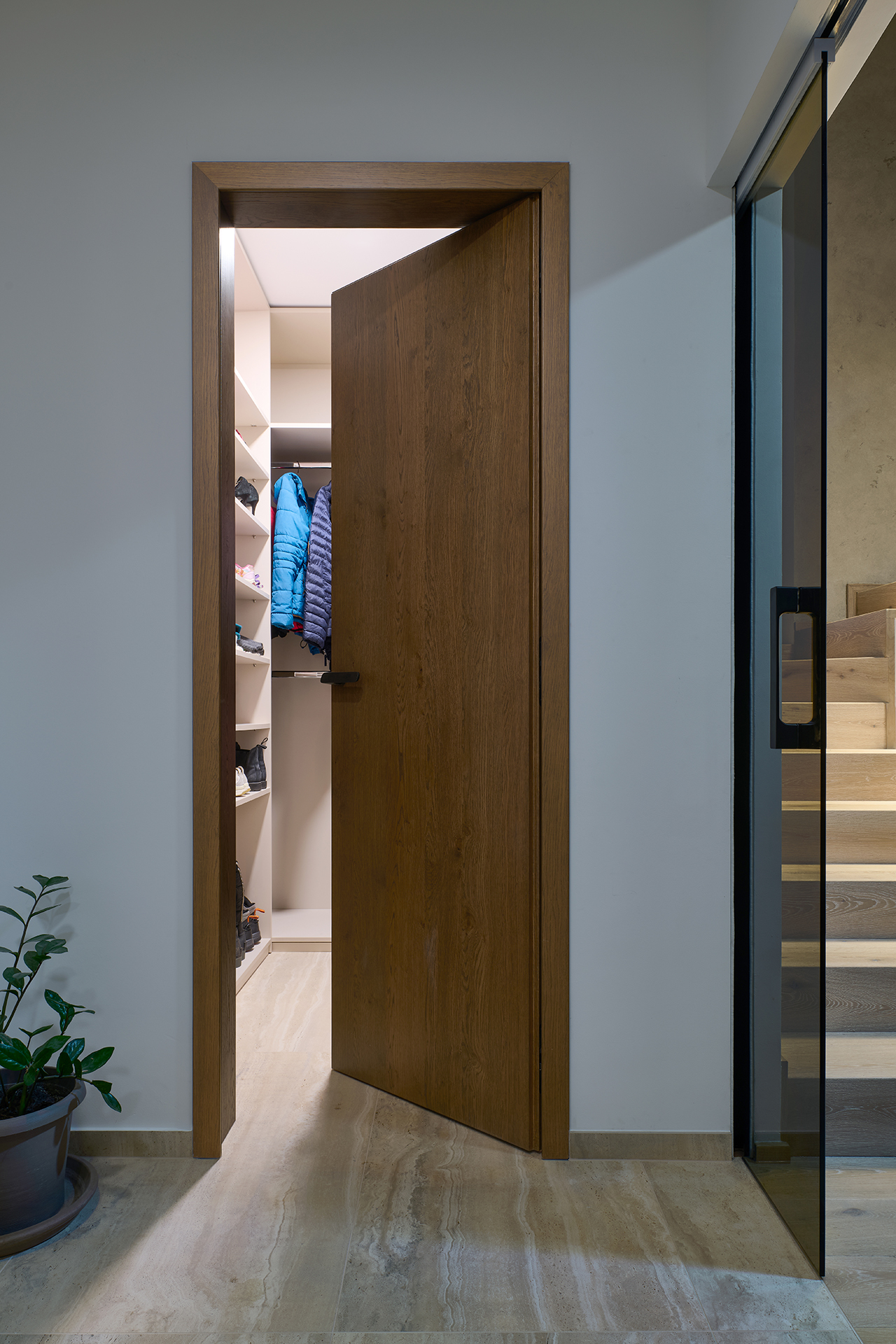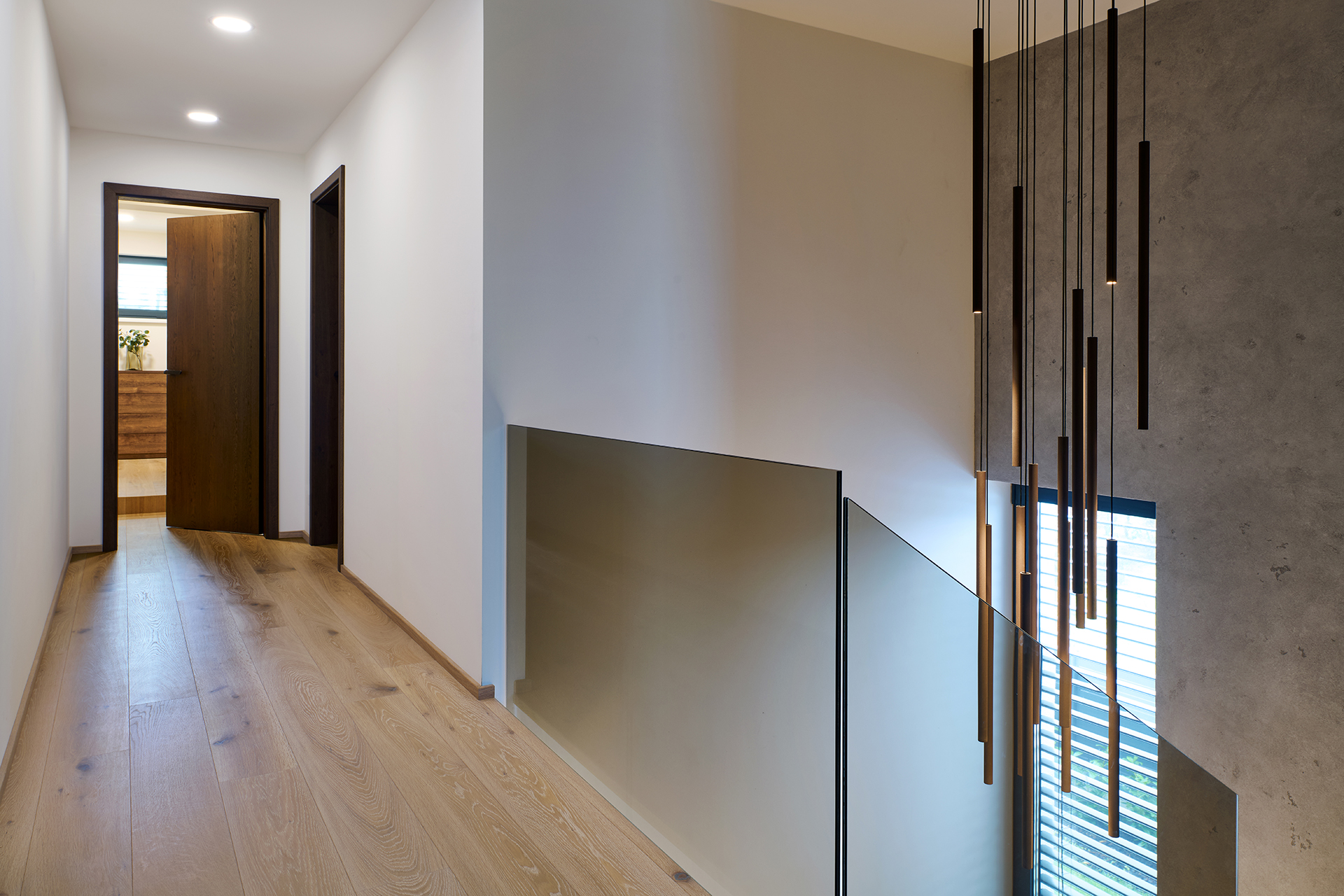 Auch die Innentüren spielen eine wichtige Rolle. In den repräsentativen Bereichen des Hauses wurden Türen mit SPACE-Verkleidung gewählt, während die anderen Räume mit den Varianten MILLENIUM LITE und SPACE LITE ergänzt wurden. Die Übergänge zwischen den einzelnen Räumen wirken so natürlich, klar und ungestört.