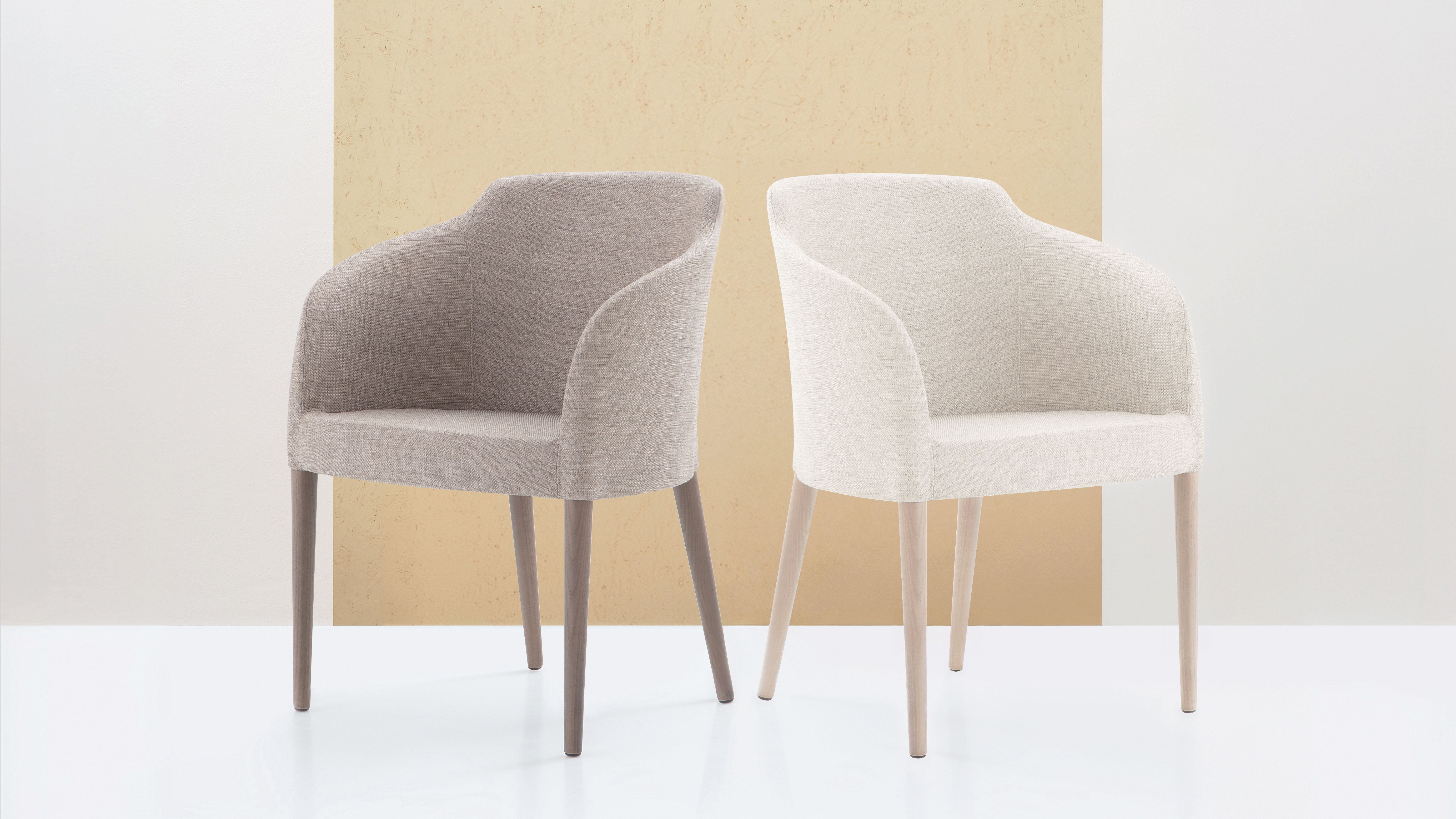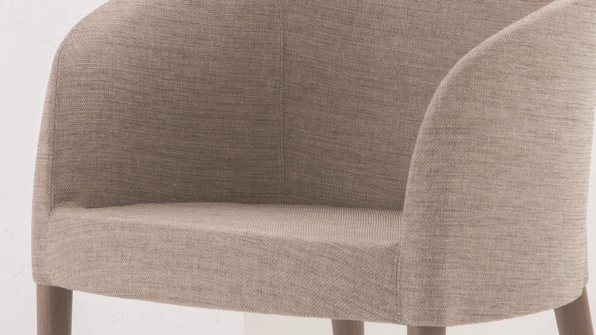 The all-upholstered LUCY armchair impresses with its gentle rounded shapes. The ash legs and polyurethane shell made of high-quality cold-injected foam reinforced with a steel frame guarantee high quality and a long service life.