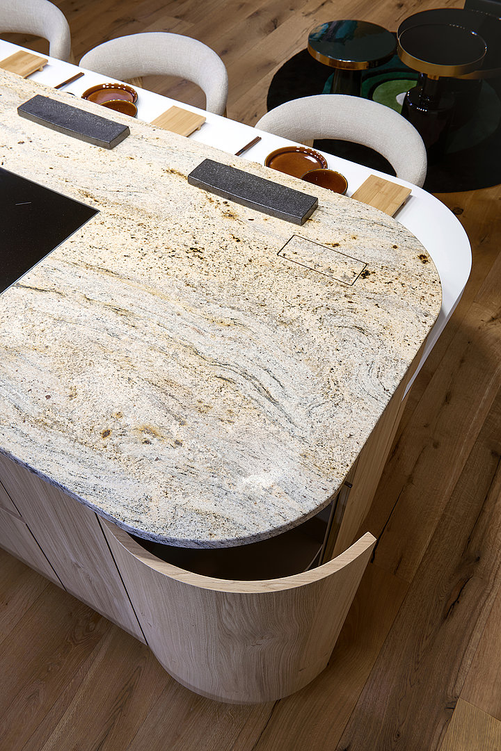 A kitchen with an emphasis on gently curved lines