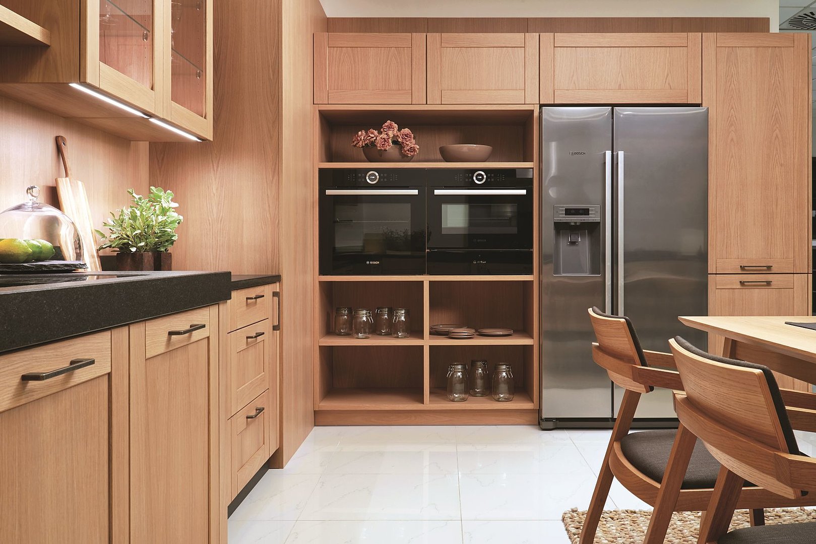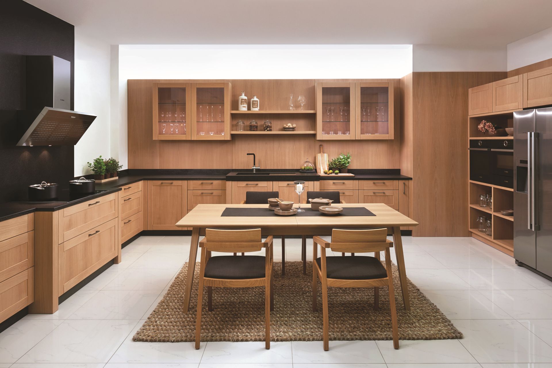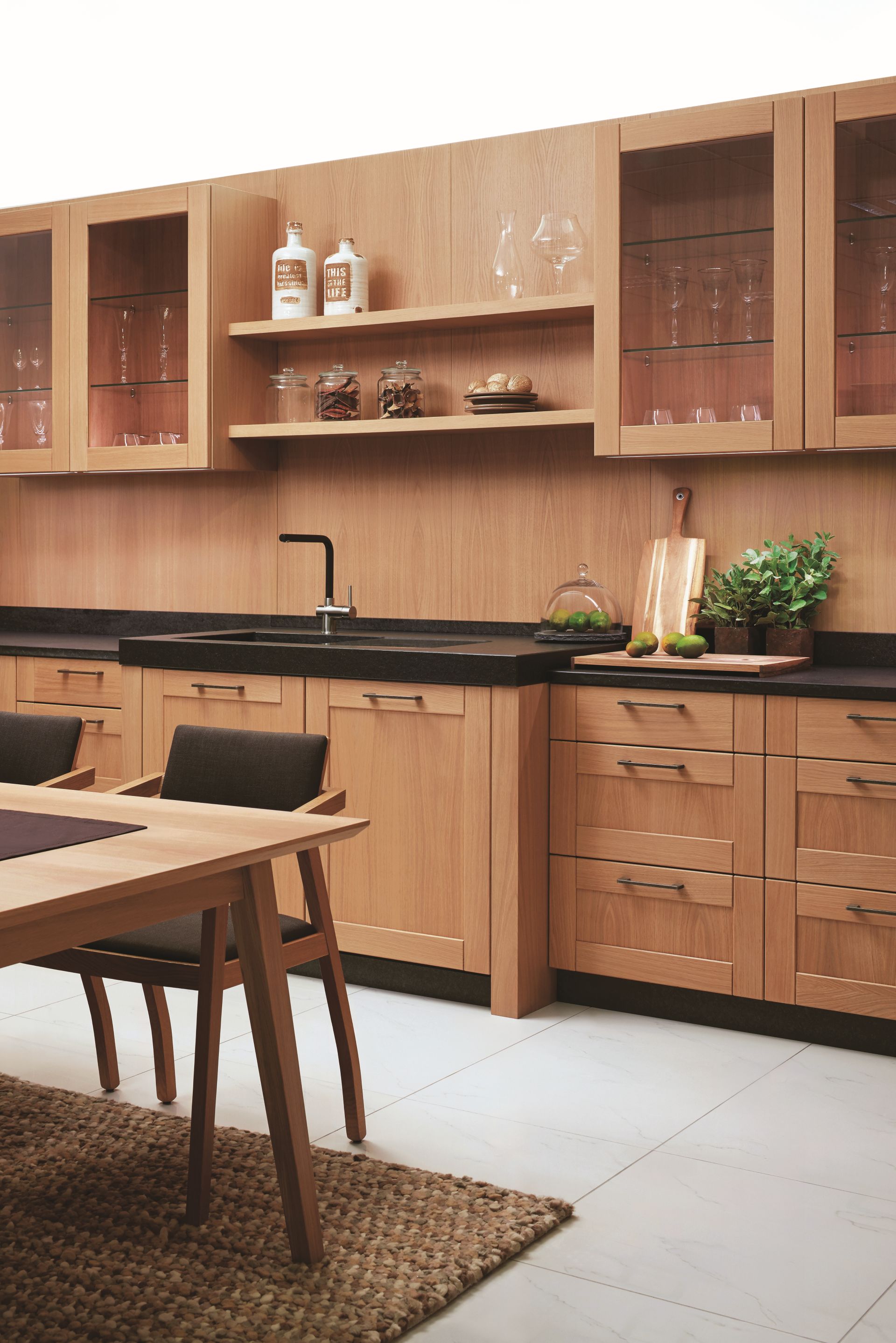 Légèreté de la vie à la campagne. Une sensation évoquée par la cuisine FORM avec une structure en chêne à nœuds. Bref, un bel endroit pour la vie de tous les jours.