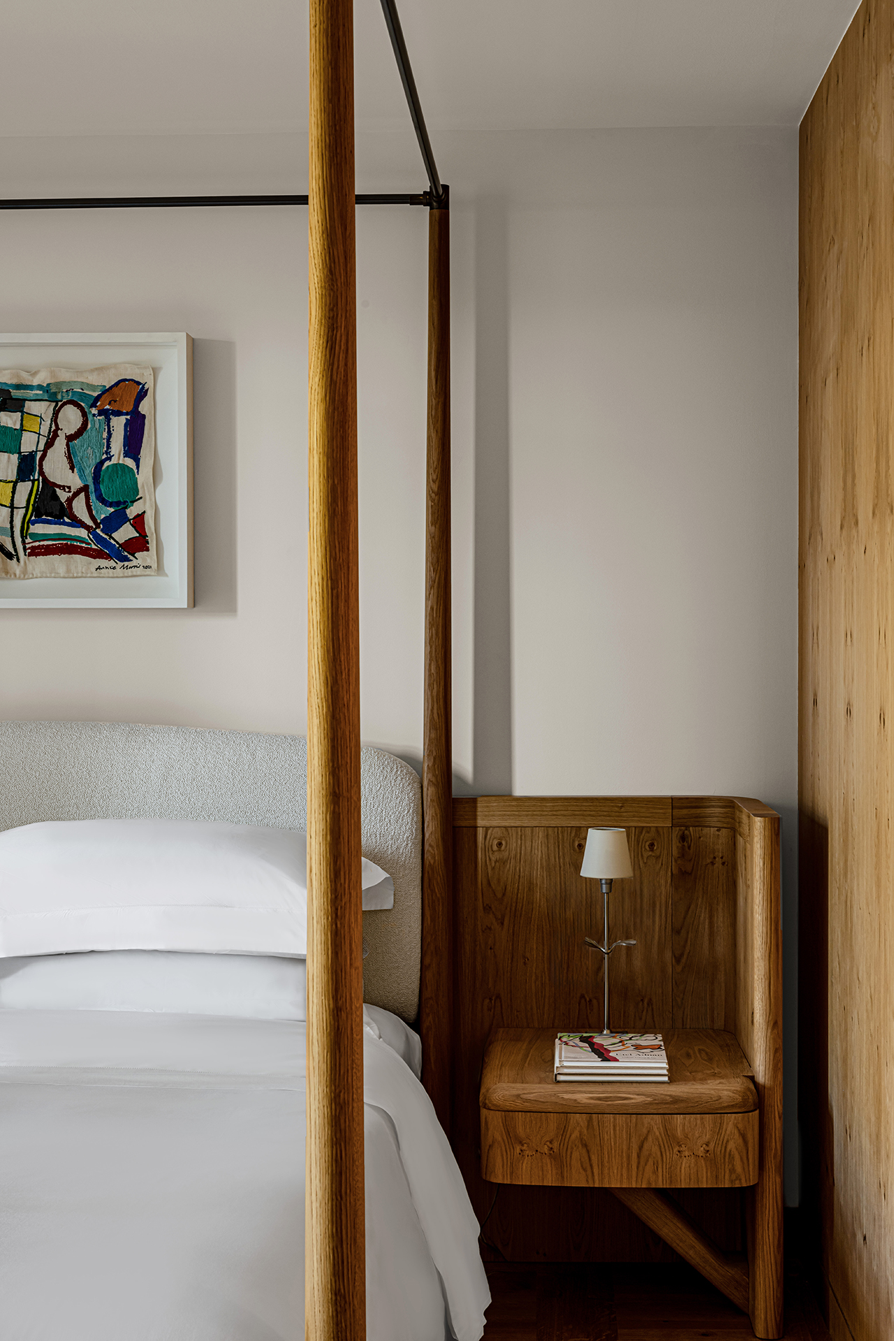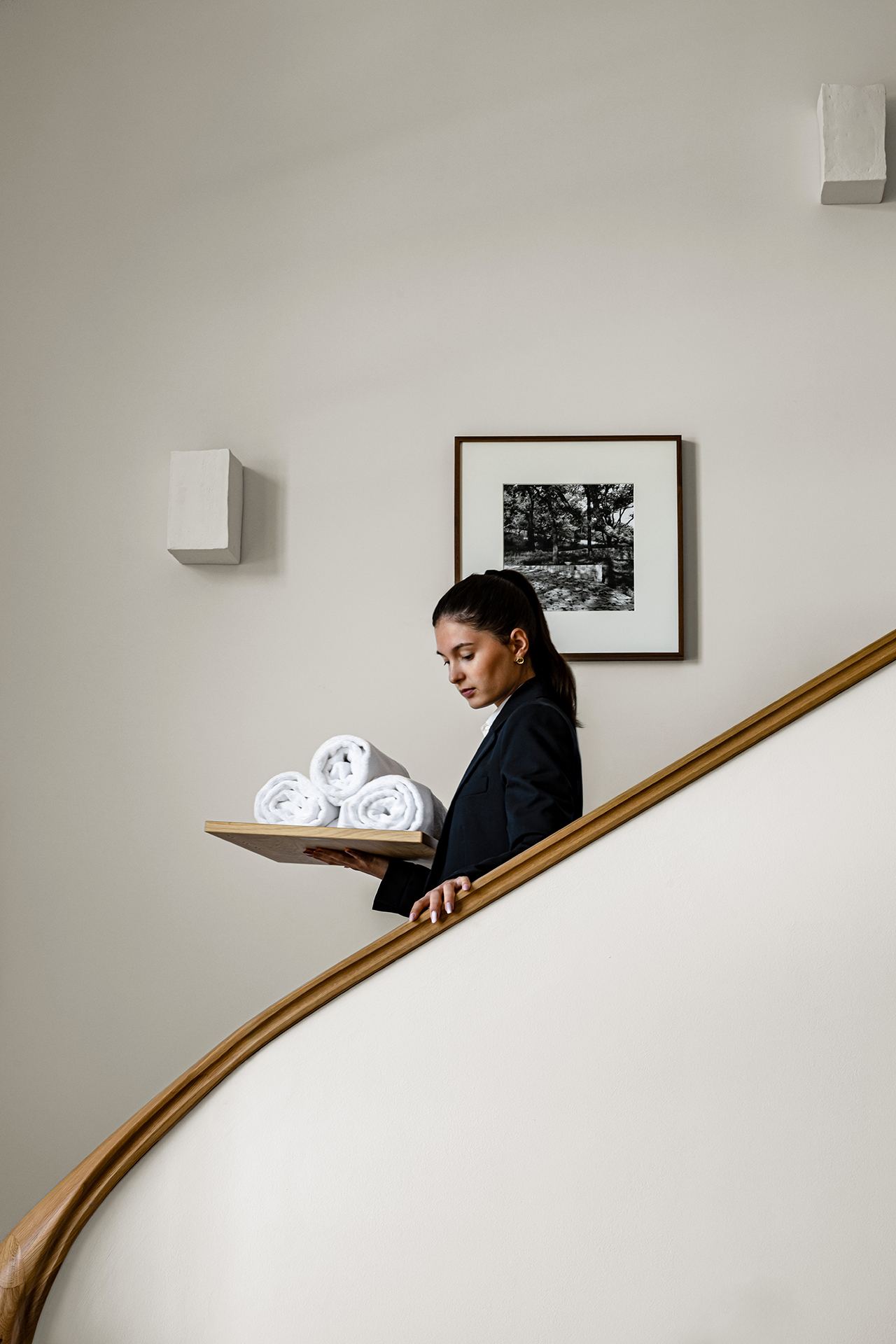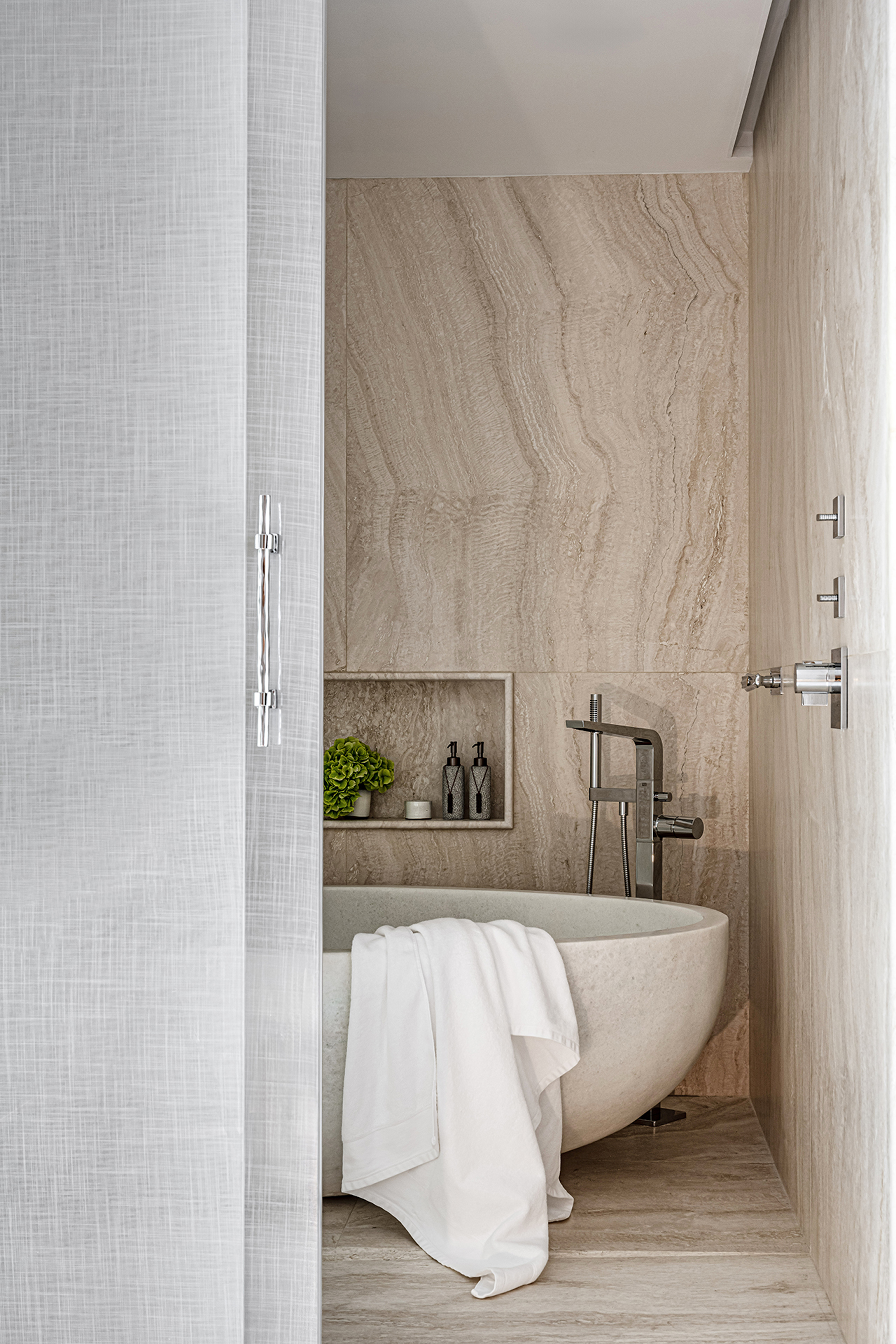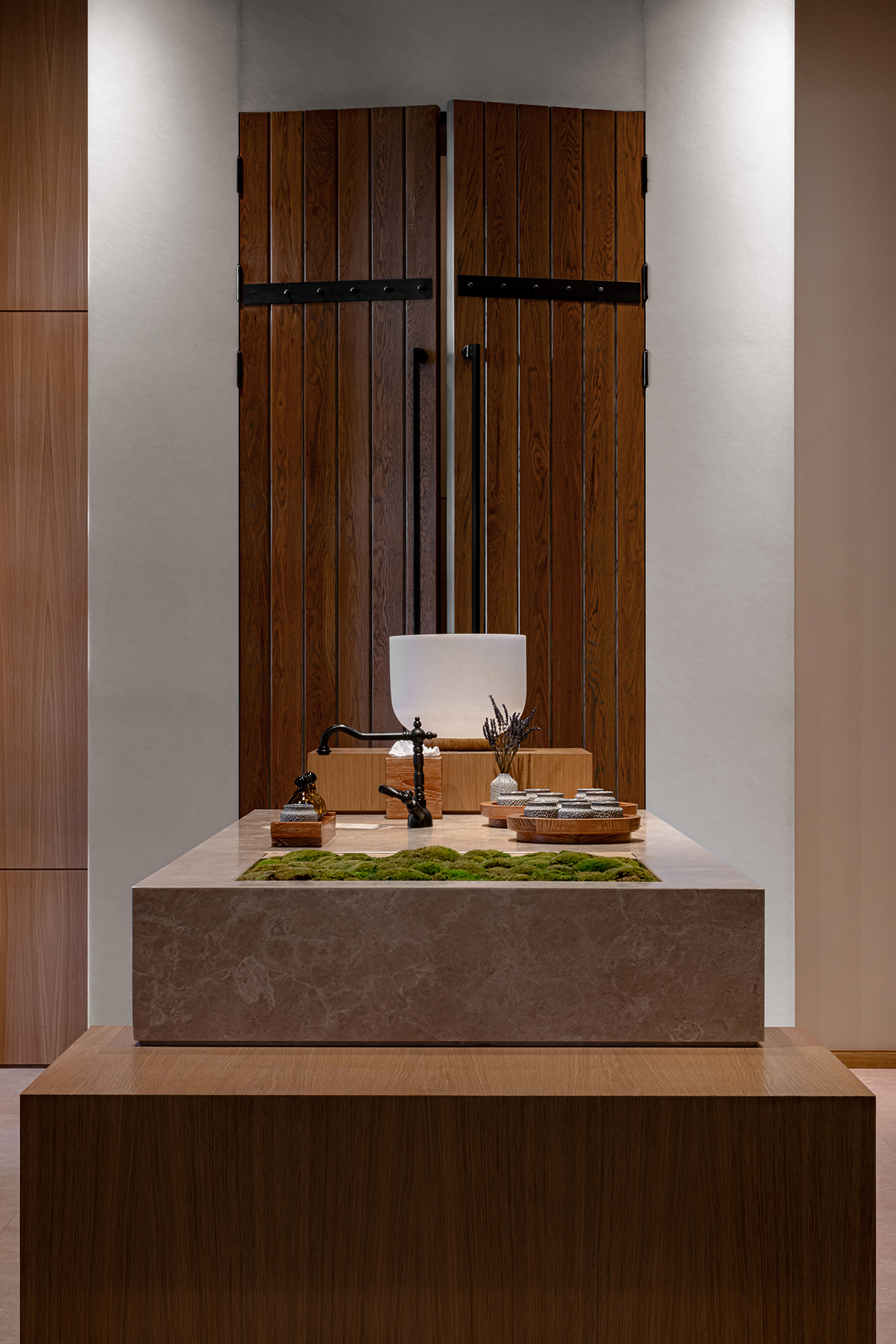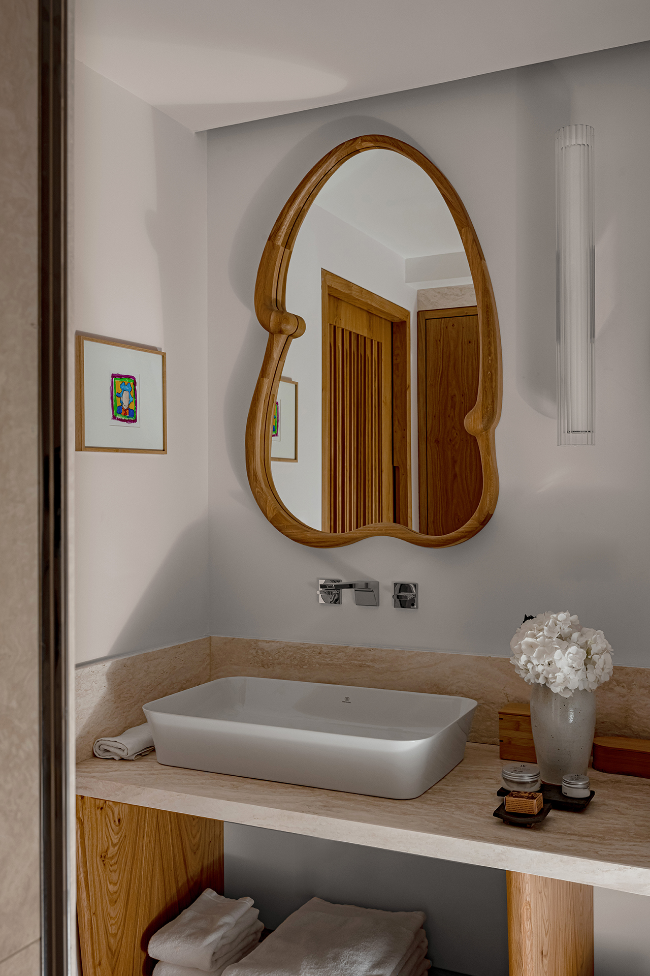 Notre travail ici a donné naissance à des appartements exclusifs, conçus et réalisés dans un esprit de solutions tout à fait atypiques. Chaque détail a été soigneusement pensé, des portes sculptées à la main, qui sont un manifeste de savoir-faire artisanal et d'extrême précision, aux lits rembourrés de matériaux haut de gamme, en passant par le bar emblématique d'un bleu azur brillant. Ce dernier a été créé exclusivement pour ce projet et son caractère exceptionnel est souligné par des détails en laiton poli, un revêtement en cuir fin et des éléments en verre trempé.