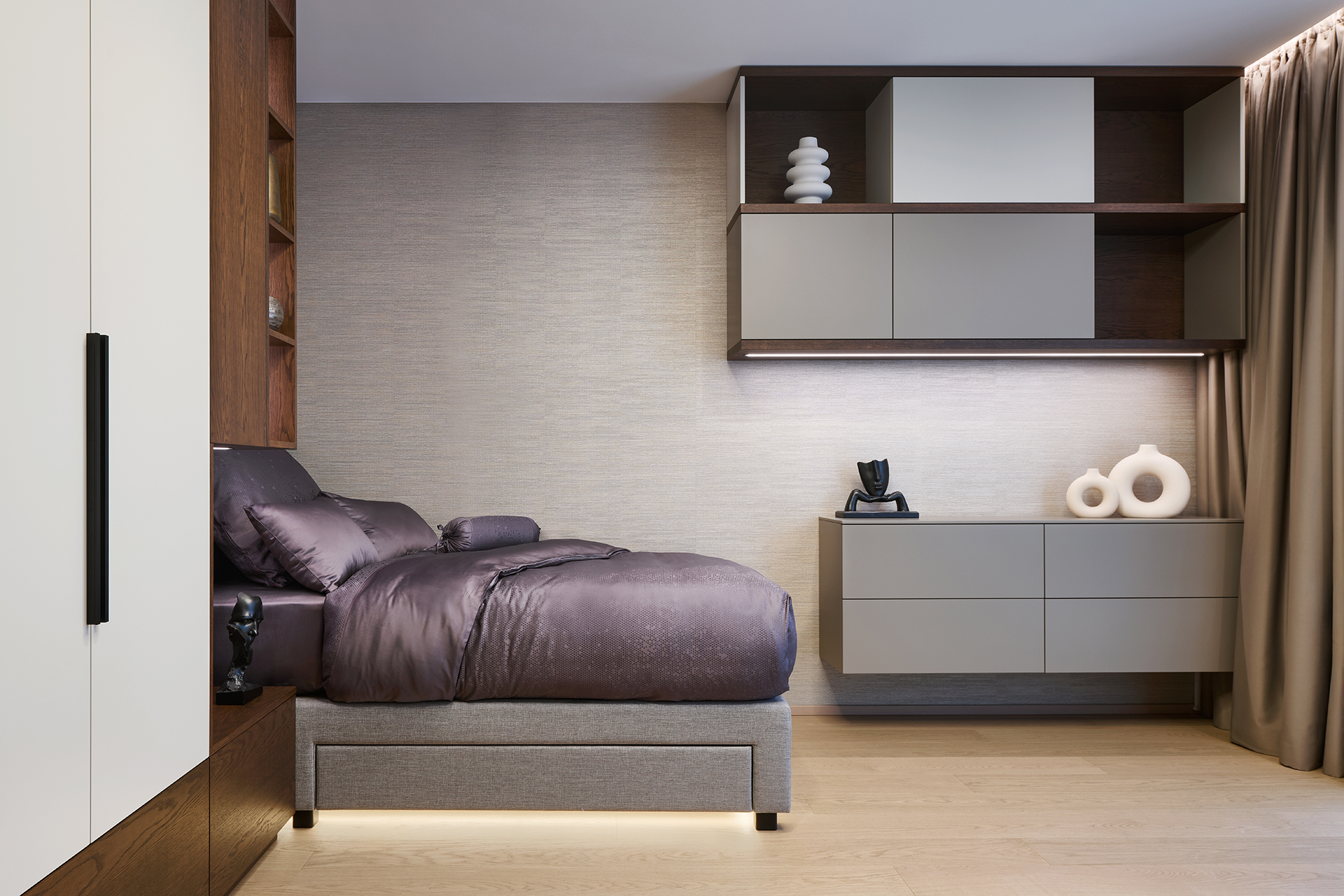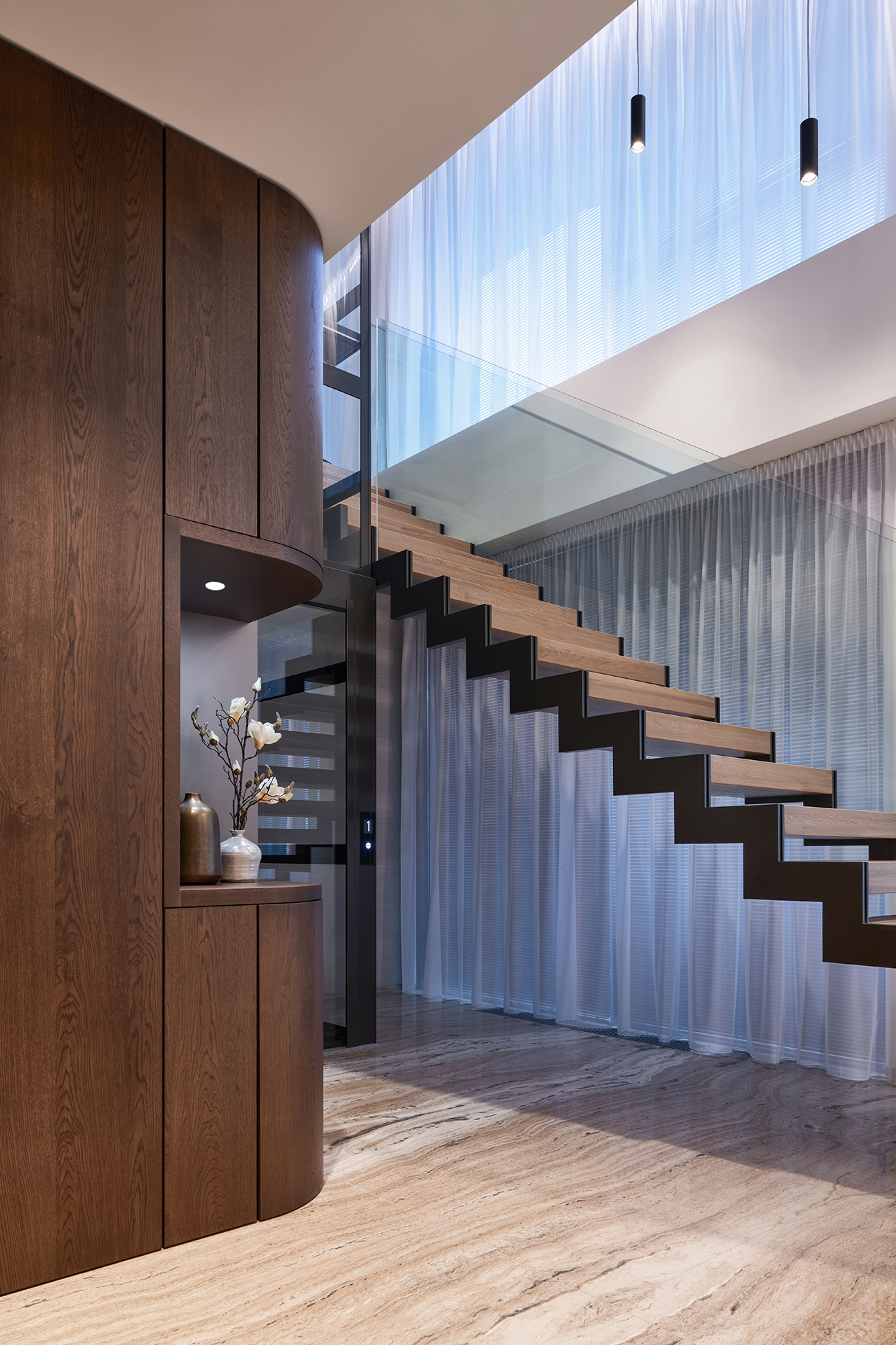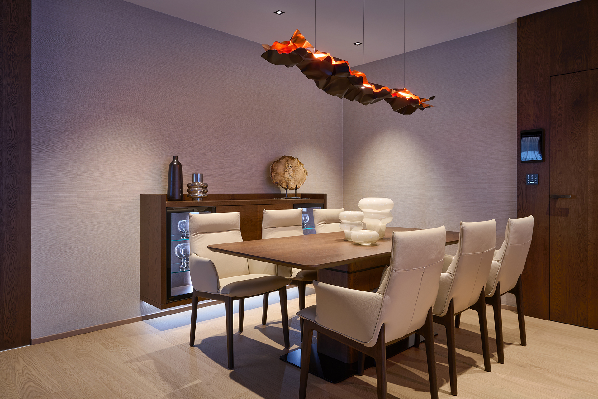Tato realizace představuje spojení moderní architektury a precizního řemesla. Každý detail je navržen tak, aby podporoval celkovou harmonii prostoru, kde ušlechtilé materiály a čisté linie vytvářejí nekompromisní standard bydlení.